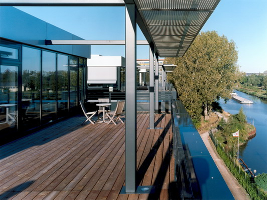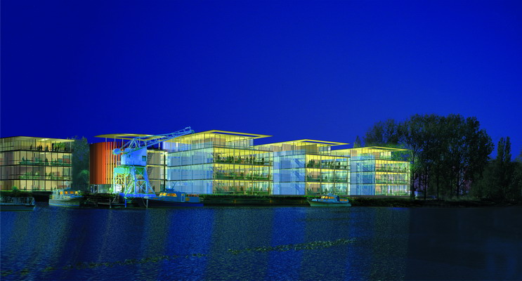 Im Projekt „Bürocenter am Yachthafen“, List am Mittellandkanal in Hannover ging der Traum eines jeden Berufsanfängers in Erfüllung: Einer meiner ersten Entwürfe im Büro „Bertram Bünemann und Partner“ wurde gebaut. Nachdem ich den Entwurf etliche Male vor Bankern, Investoren, Mietern und Bauunternehmen mit vorgestellt hatte, gehörte es nun zu meinen Hauptaufgaben das Konzept gegenüber allen Baubeteiligten, insbesondere den Behörden, zu vertreten und die weiteren Leistungsphasen vorzubereiten.